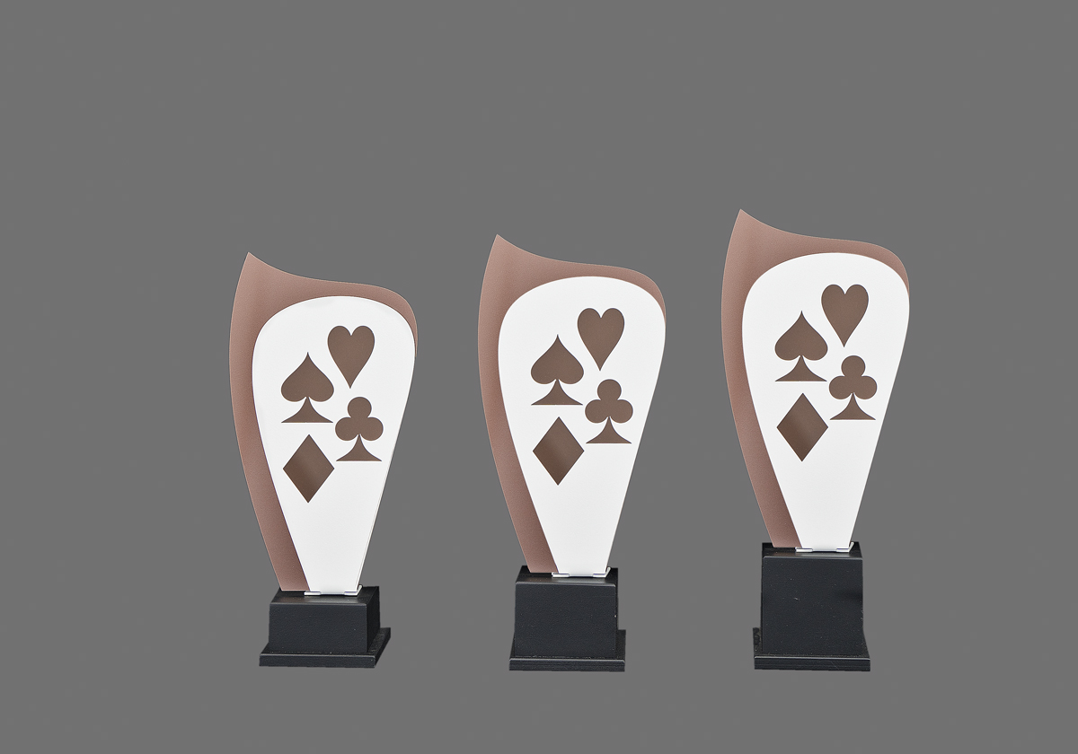 Troféu ideal para competições de sueca e poker, com design clássico e acabamento cuidado. Disponível em vários tamanhos.