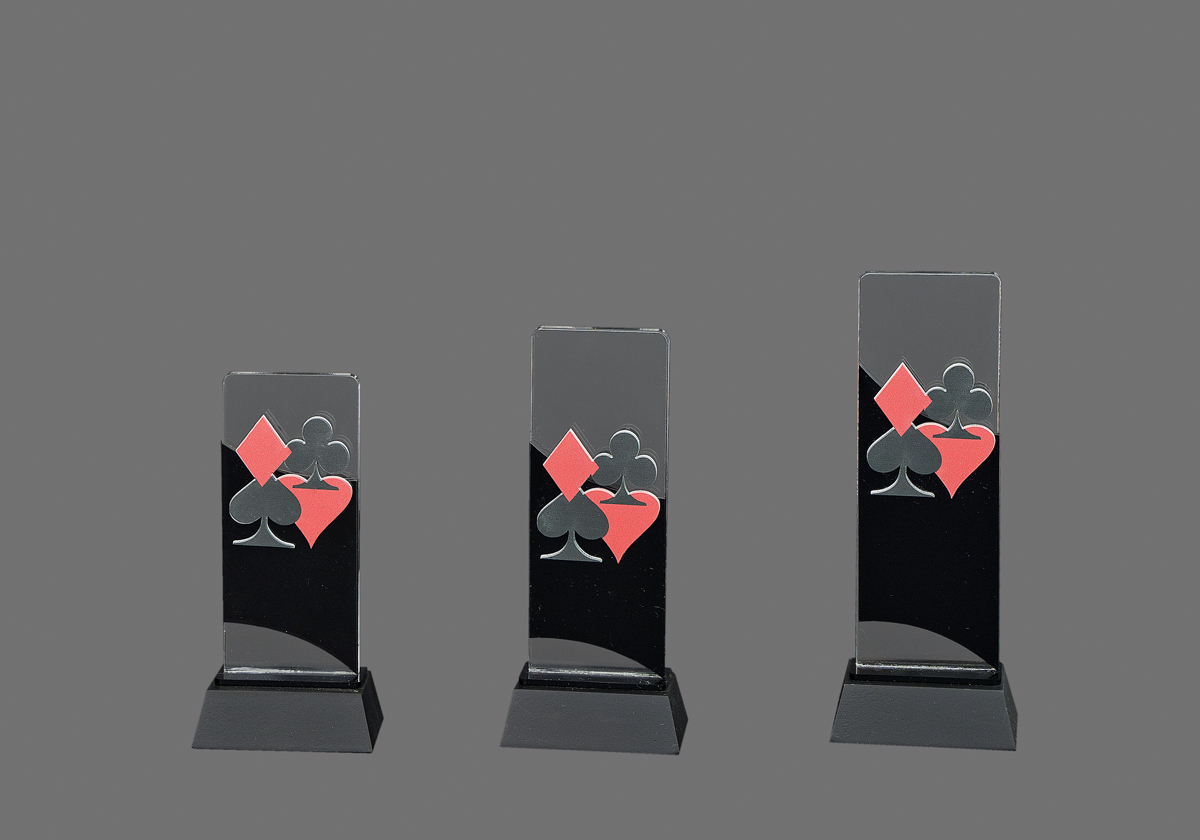 Troféu ideal para competições de sueca e poker, com design clássico e acabamento cuidado. Disponível em vários tamanhos.