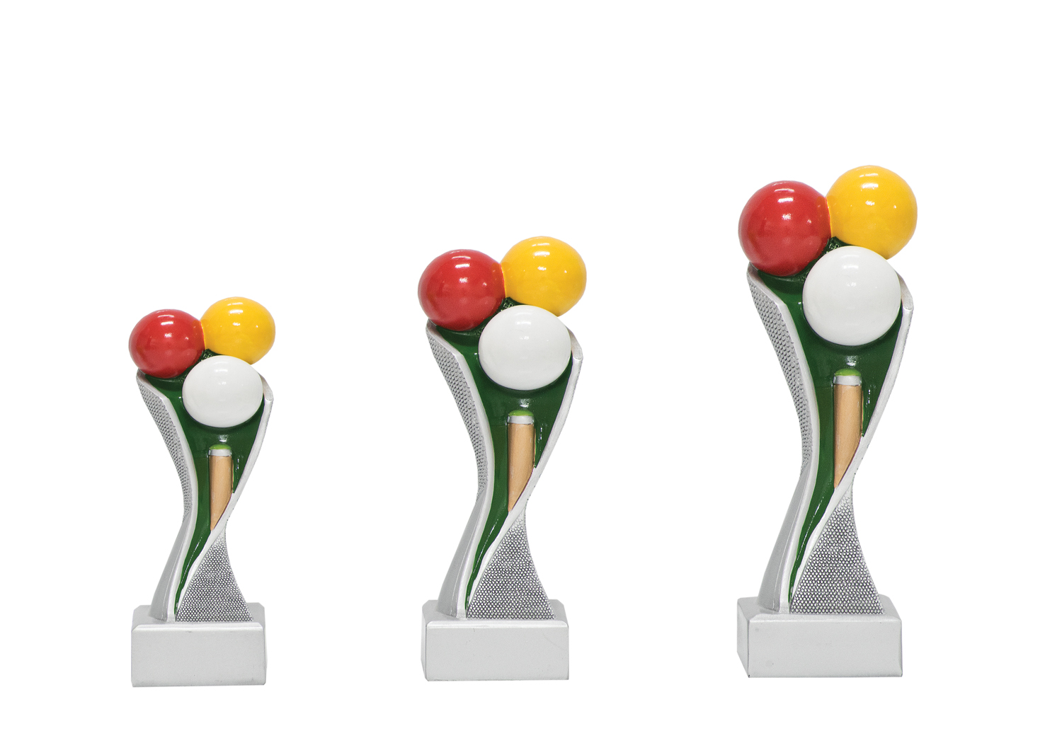 Troféu com design desportivo, ideal para competições de bilhar e snooker. Acabamento cuidado e aspeto profissional.